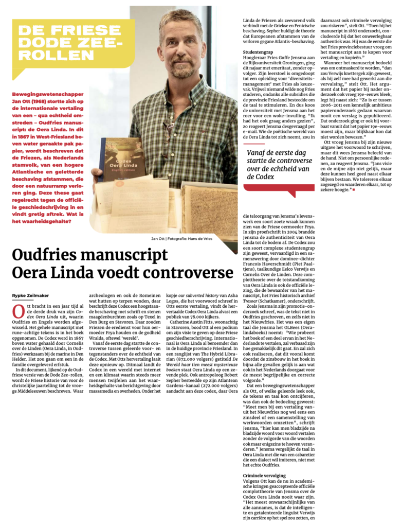 In De Andere Krant, nr. 49 (17-24 december 2022), p.17 staat een artikel van Rypke Zeilmaker met de titel Oudfries manuscript Oera Linda voedt controverse. Hieronder volgt een eerste reactie.